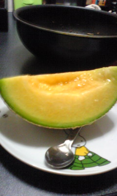 頂き物のメロンです。一玉数千円するらしい・・・。