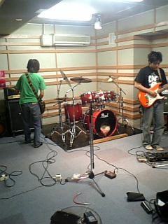 いや~夜は少しずつですが気温が下がってきましたね。しかし我々は今日も真昼間から練習でした。画像は音作りをしているミストロウの2トップです。多分撮られている事に気づいてません。ほんとバカだねっ。クスッ。